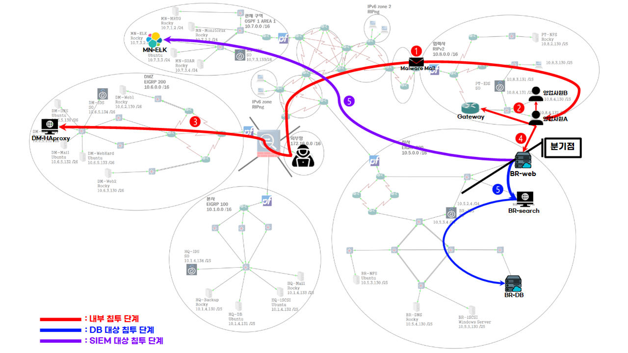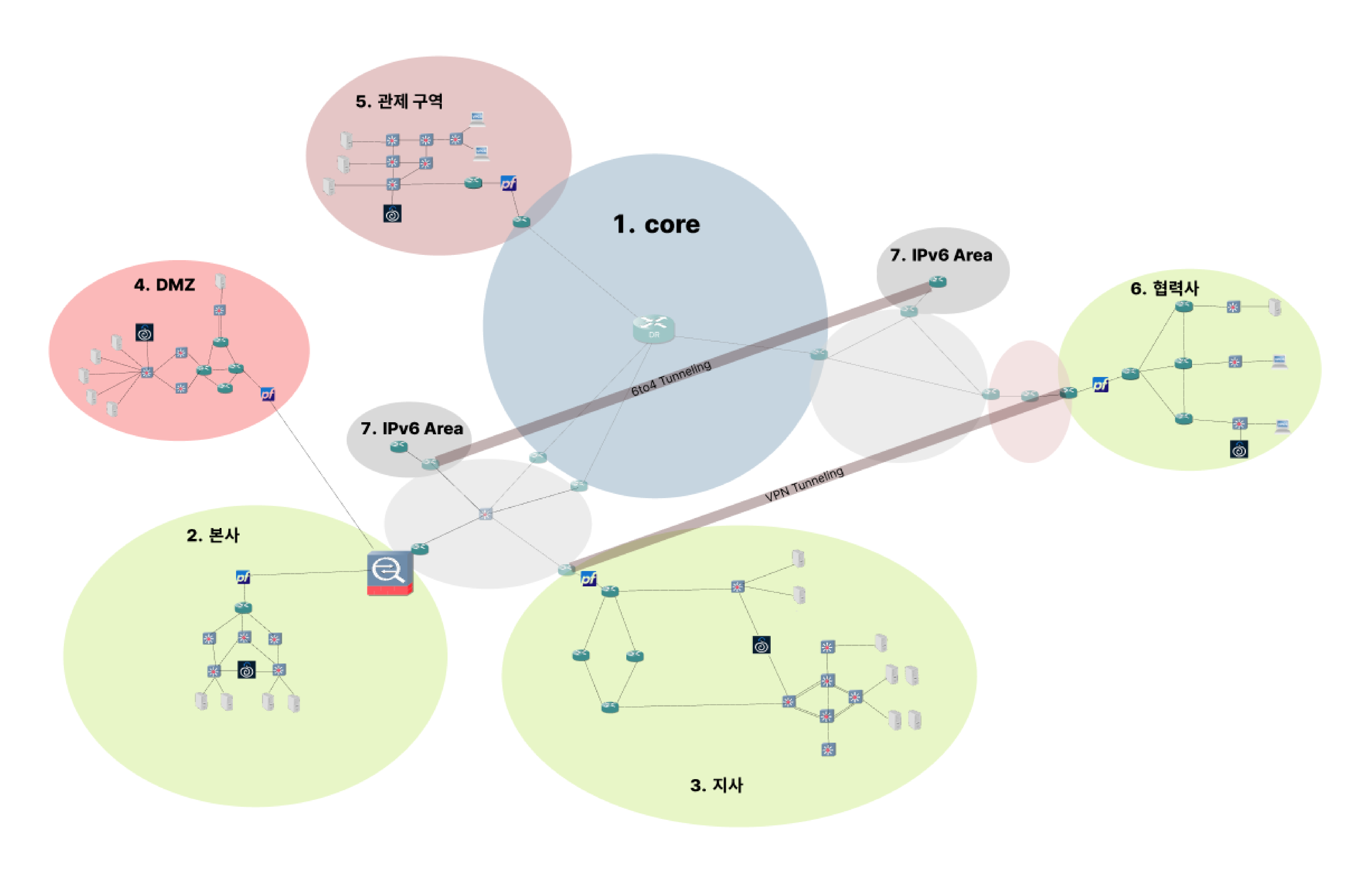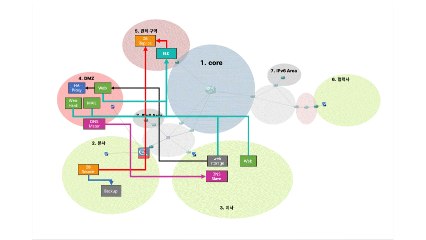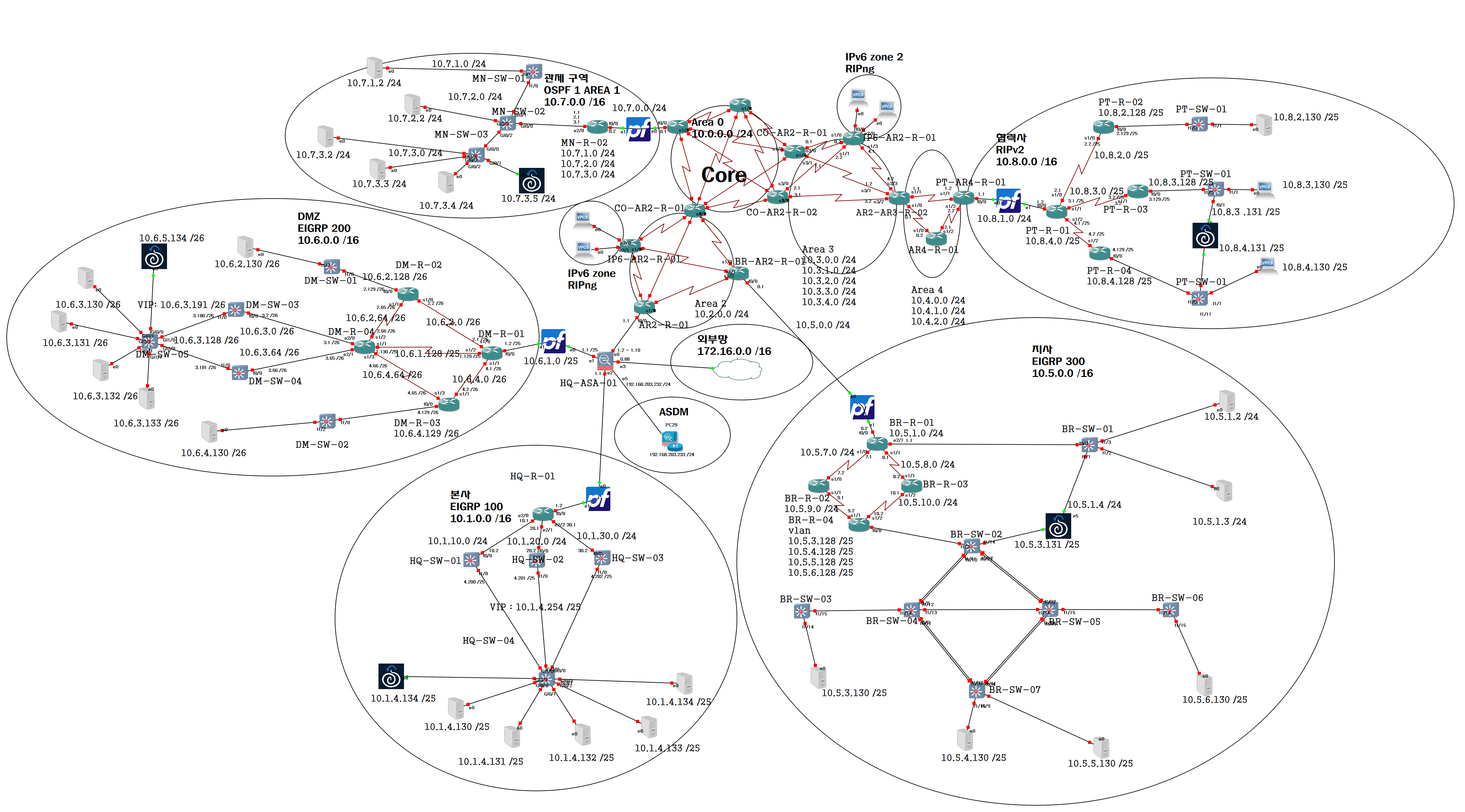 - 다양한 라우팅 프로토콜과 장비를 사용하여 네트워크 망 구성